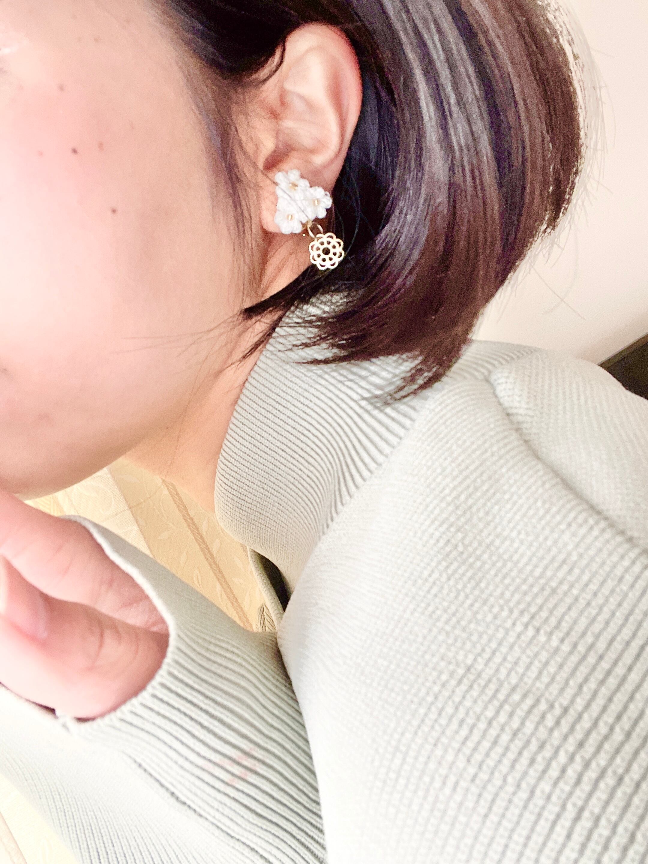 レース糸とビーズで作られているので、非常に軽く、耳への負担を軽減します。