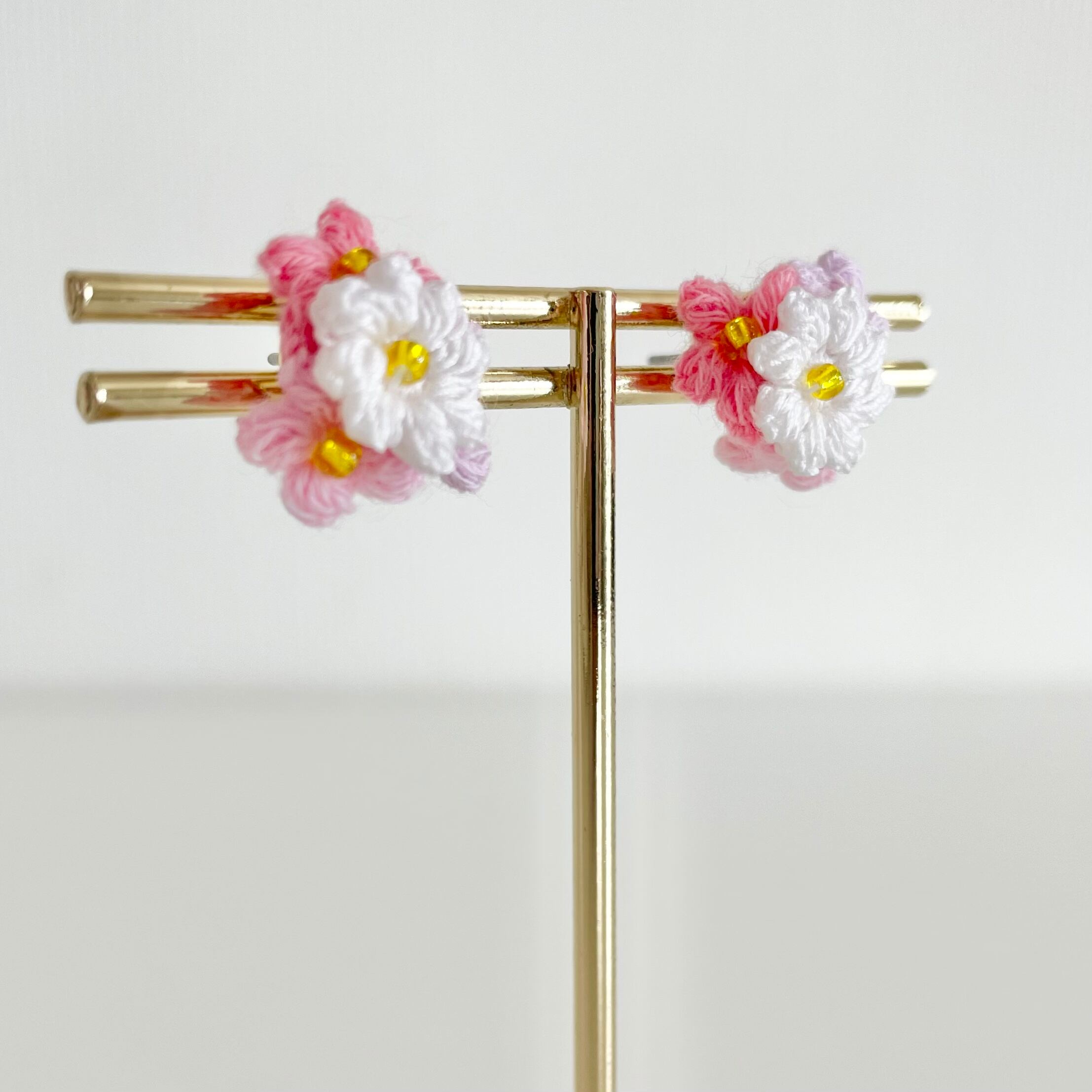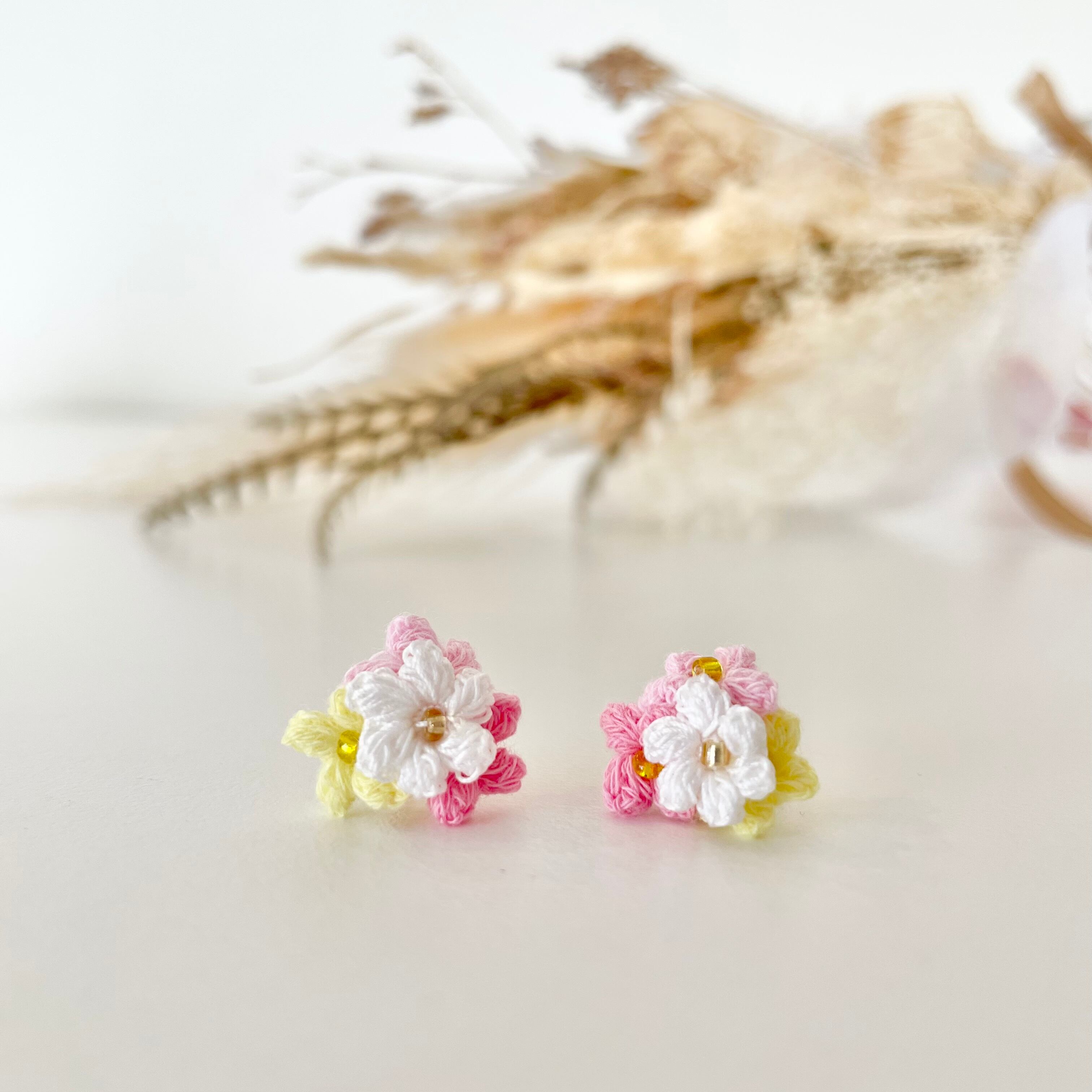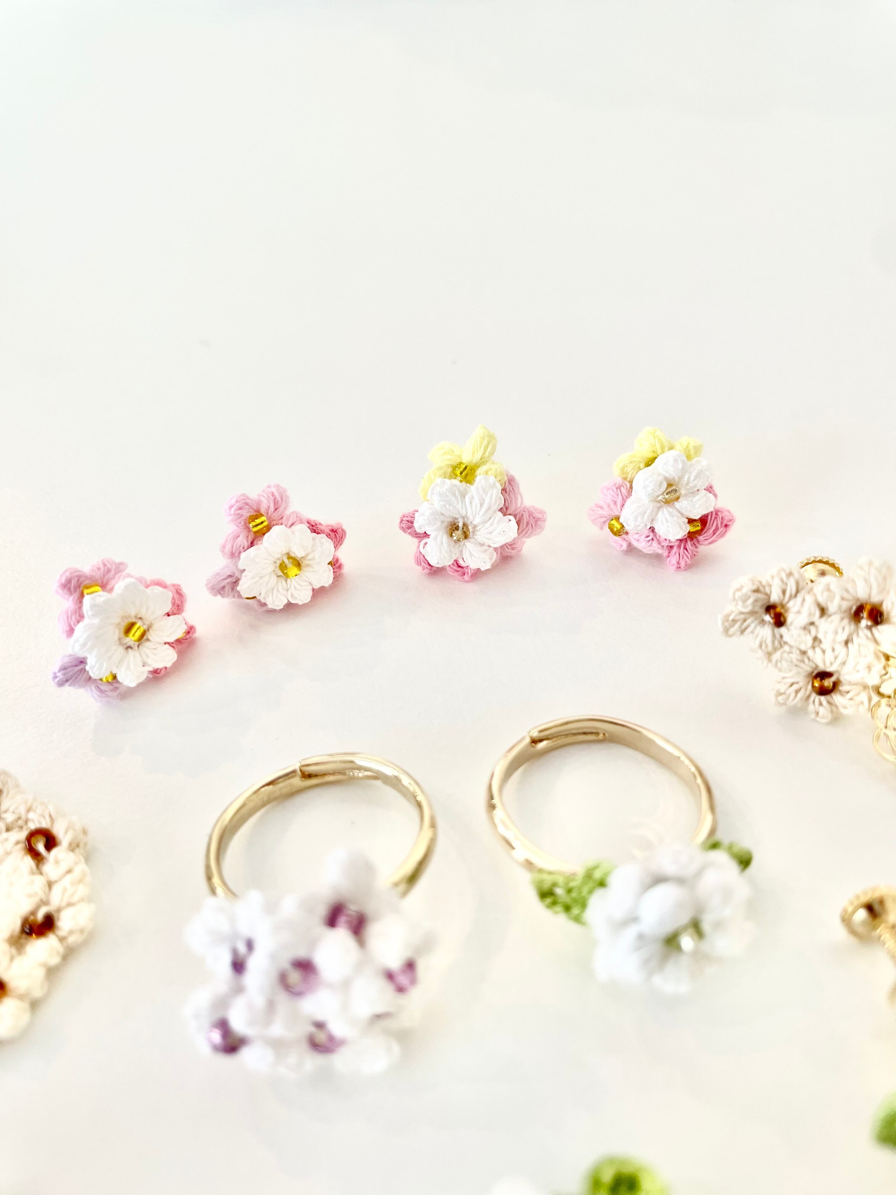 幸せ運ぶ春の色 ❁⃘ ( 小さなお花のクロッシェピアス )