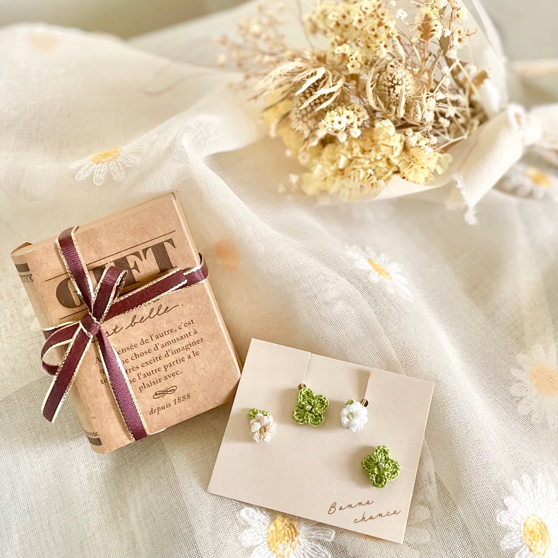 ・ひとつひとつ丁寧に作ることを心がけておりますが、レース編みアクセサリーは大変繊細です。水濡れ、汗、火器、強い衝撃、直射日光、高温等にご注意ください。