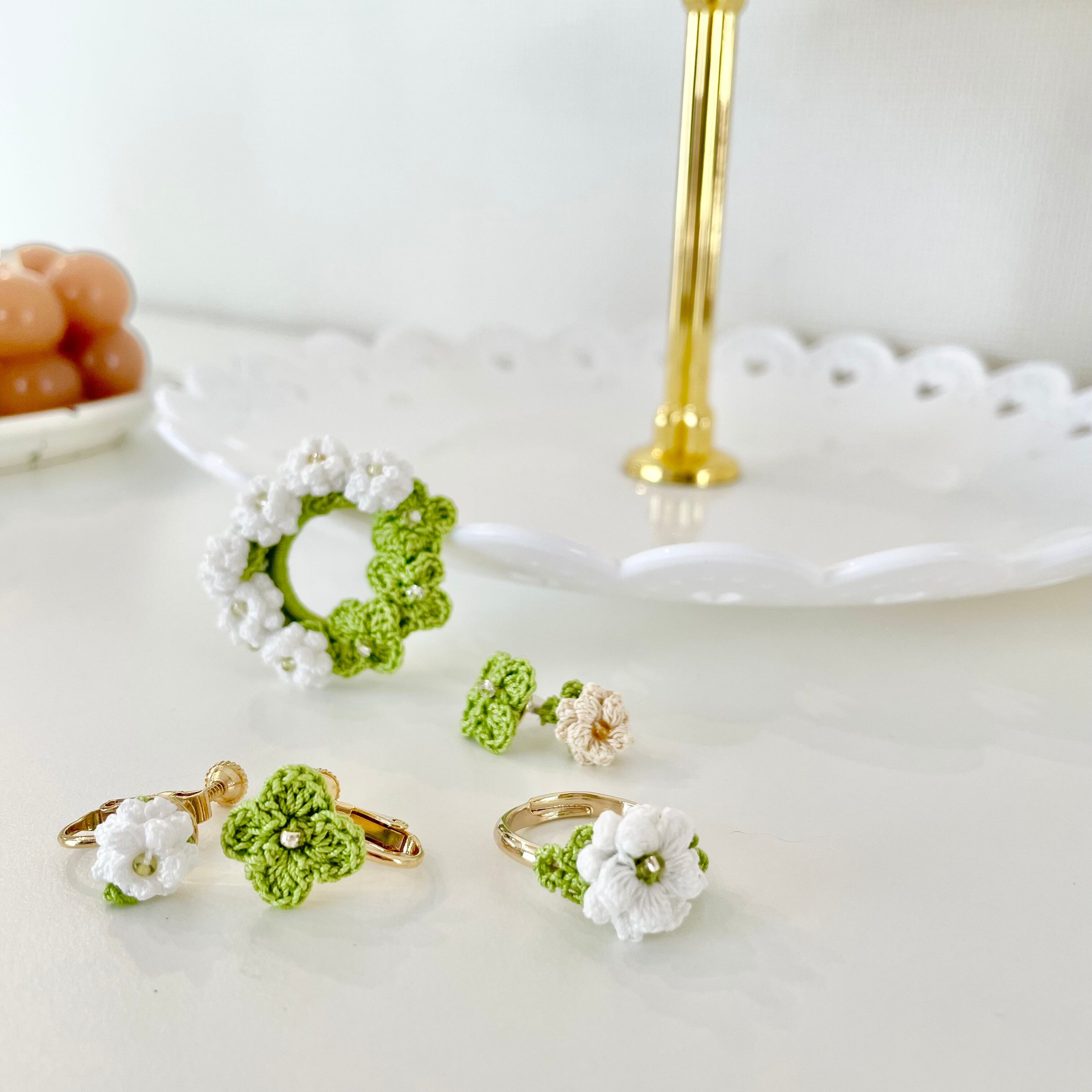 幸せな約束 ❁⃘ (小さなお花クロシェット ピアス&イヤリング)