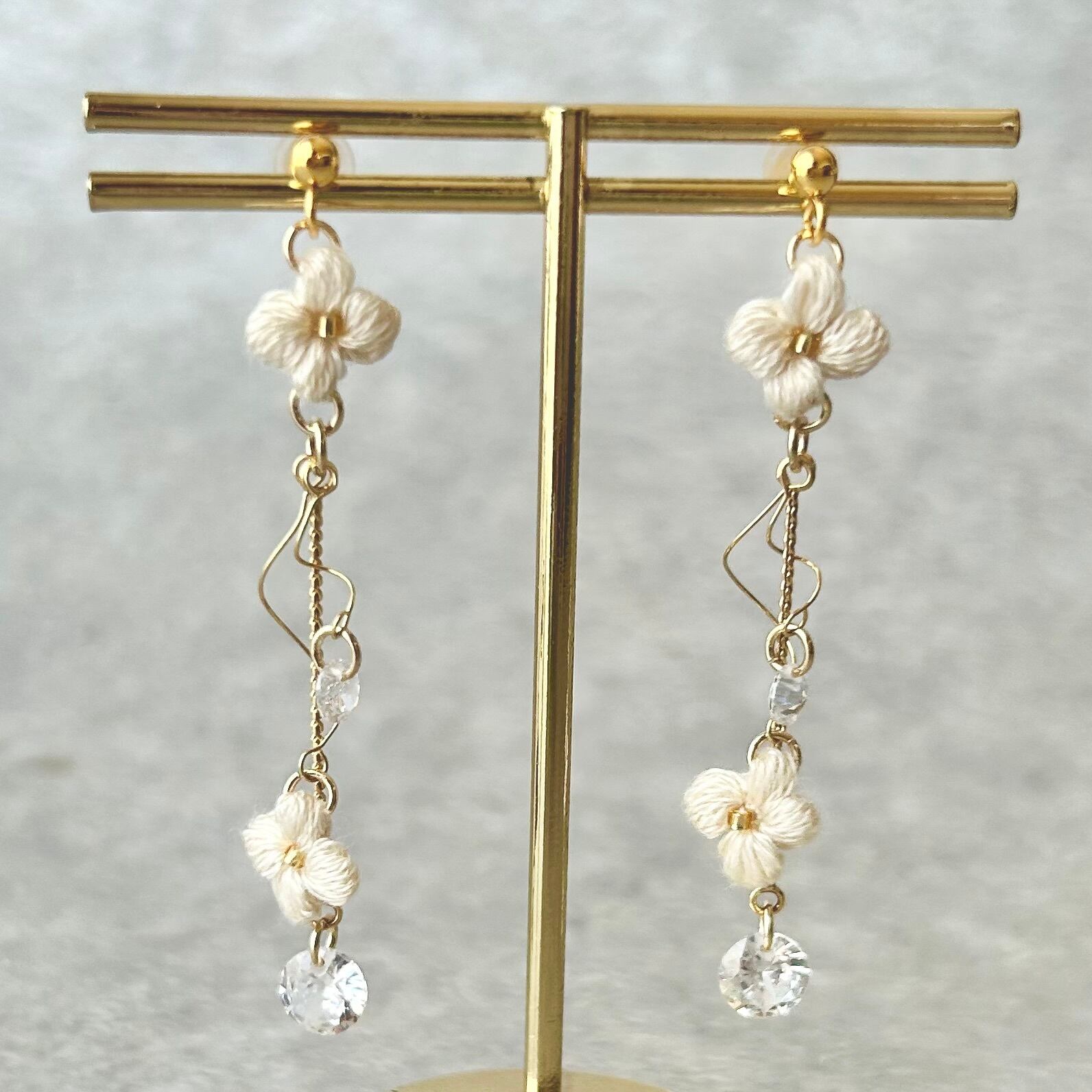 秋の耳飾り 【 銀木犀×ジルコニア 】